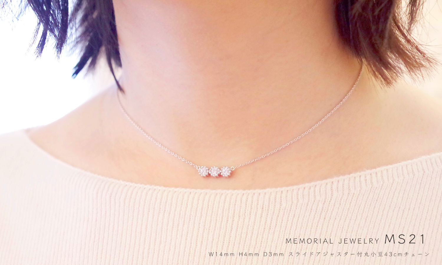 【MS21/K10WG】 樹脂封入の完全防水メモリアルジュエリー 遺骨ペンダントMS20 10金ホワイトゴールド×3石の宝石