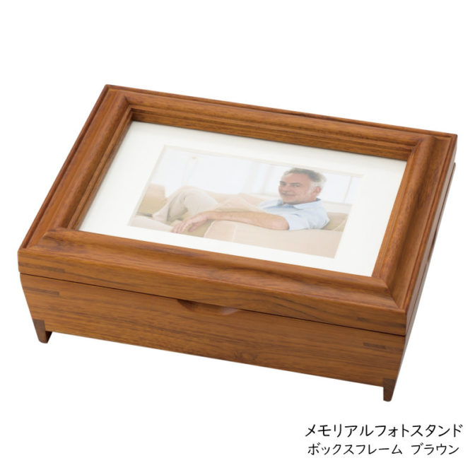 ミニ骨壷収納型写真立て メモリアルフォトスタンド [ボックスフレーム] ブラウン