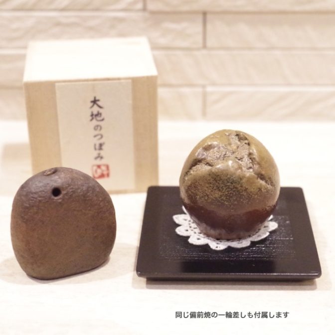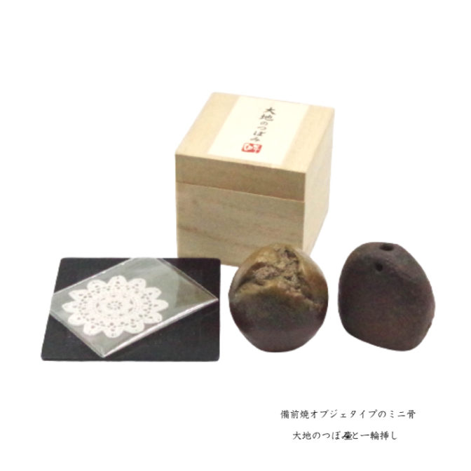 ミニ骨壷 備前焼オブジェタイプの分骨壷 「大地のつぼみ」敷板・一輪挿し付
