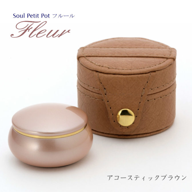 おしゃれでかわいい携帯ケース付ミニ骨壷 ソウルプチポットフルール 【アコースティックブラウン】