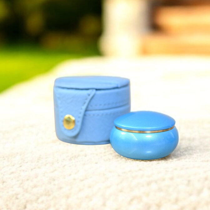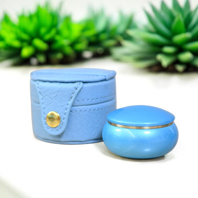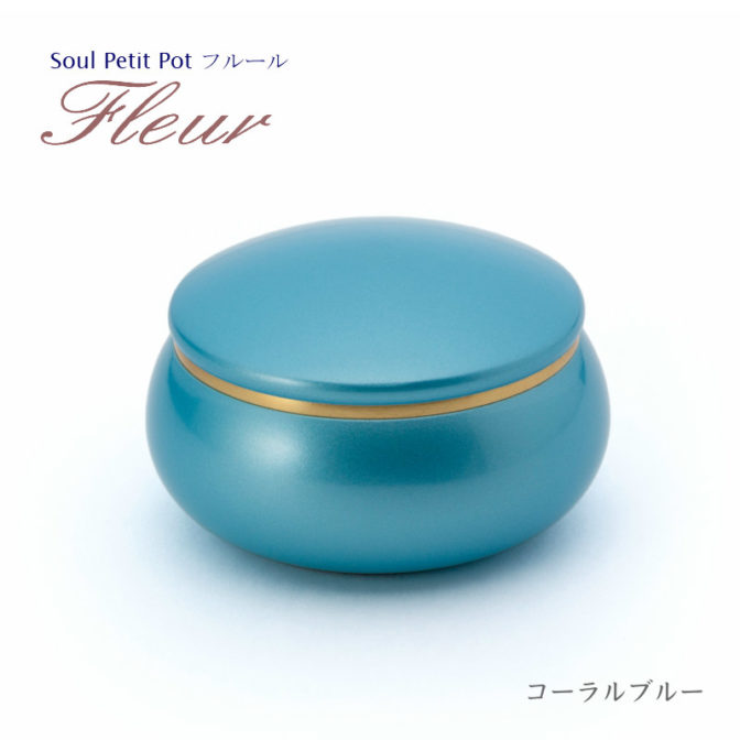 おしゃれでかわいい携帯ケース付ミニ骨壷 ソウルプチポットフルール 【コーラルブルー】