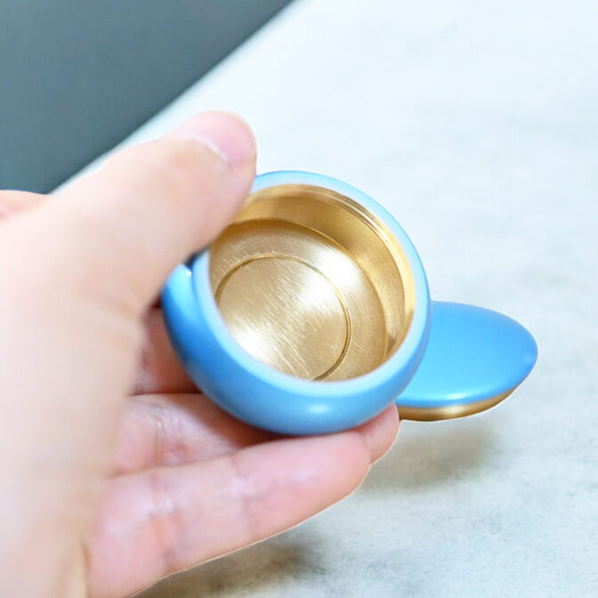 素材:真鍮/フェルト(底面) サイズ:高さ27mm 直径46mm 内寸:口径32mm 深さ21mm 重さ:70g (ケースとの総重量100g) 内容量:25cc