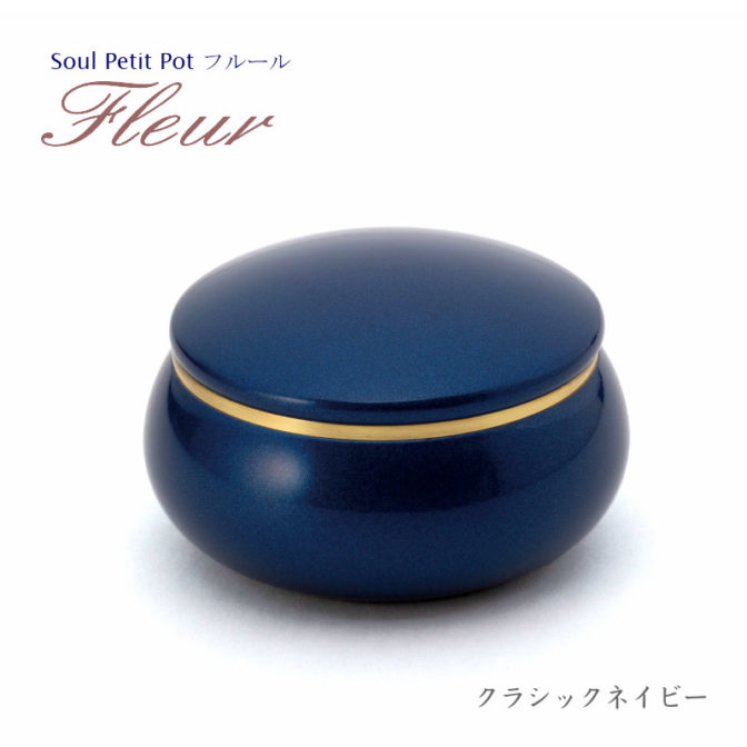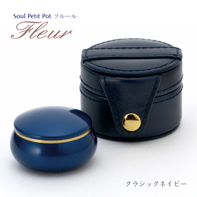 おしゃれでかわいい携帯ケース付ミニ骨壷 ソウルプチポットフルール 【クラシックネイビー】
