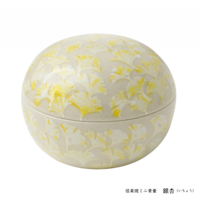 信楽焼 手元供養用ミニ骨壷 おもかげ 銀杏 ~icho~