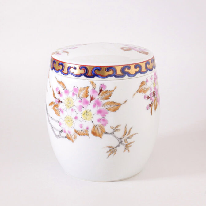 有田焼総手書きのミニ骨壷「色絵山桜」