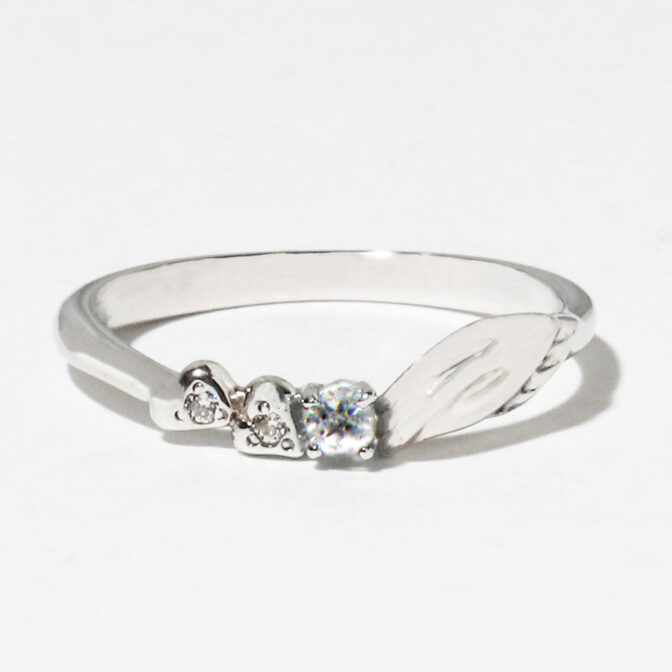 メモリアルらしい天使の羽とハートのデザイン。3石の組み合わせが自由です。納期ご遺骨お預かりから5週間。刻印オプションありは6週間。