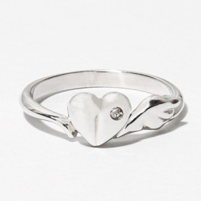 メモリアルリングらしいハートと天使の羽のピンキーリングです。