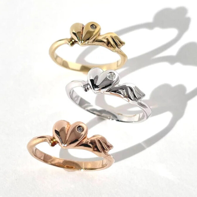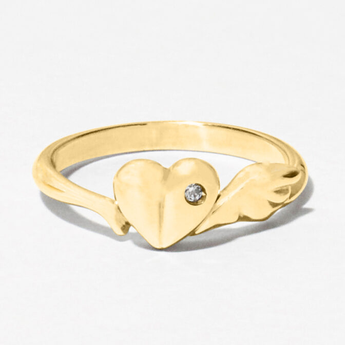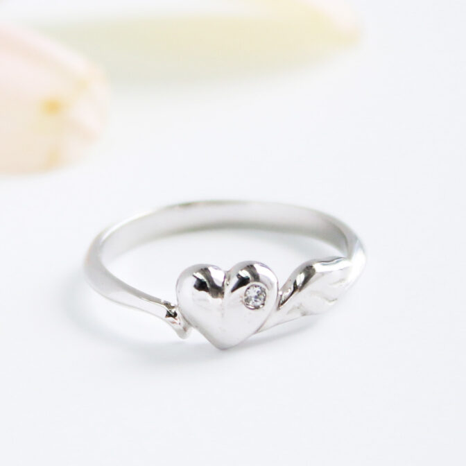 メモリアルリングらしいハートと天使の羽のピンキーリングです。