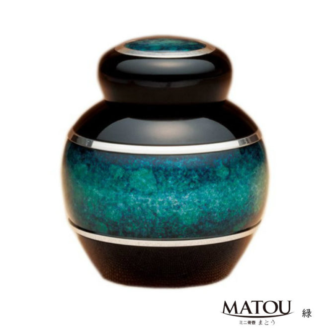 手元供養用 ミニ骨壷 [まとう/緑] 七宝瑠璃と金属加工の技による品質高い逸品