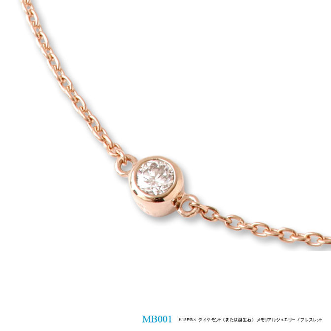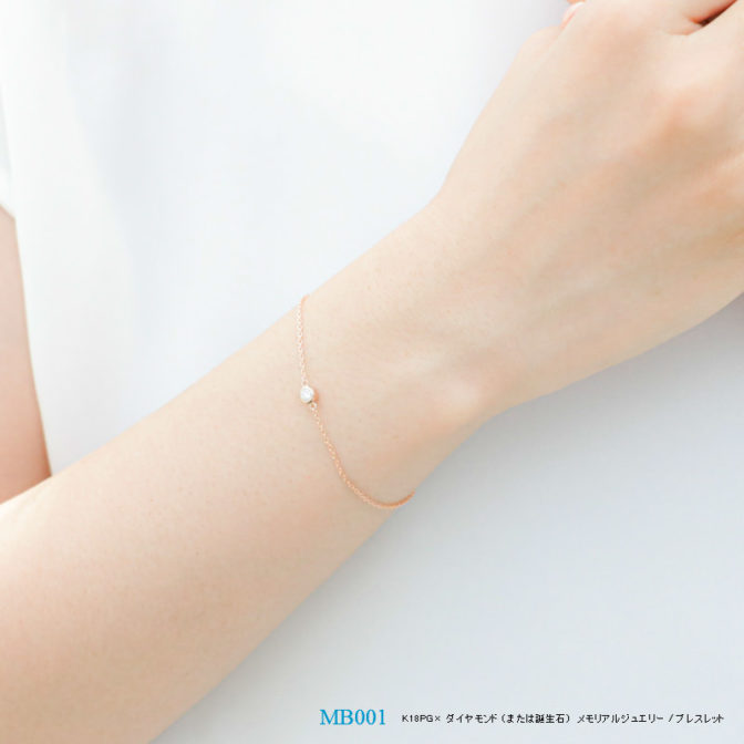メモリアルジュエリー ブレスレット MB01 【完全防水樹脂埋封ジュエリー】 K18PG×ダイヤモンド(誕生石)