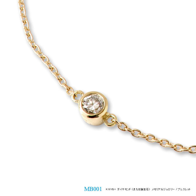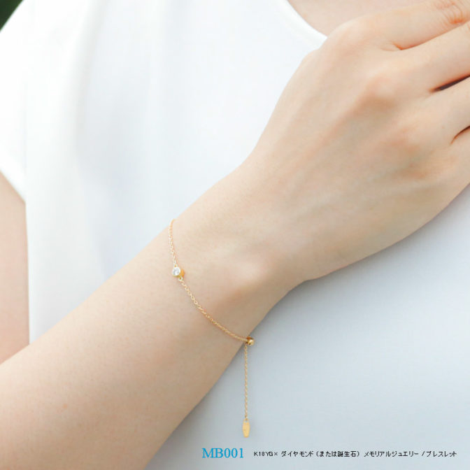 メモリアルジュエリー ブレスレット MB001 【完全防水樹脂埋封ジュエリー】 K18YG×ダイヤモンド(誕生石)
