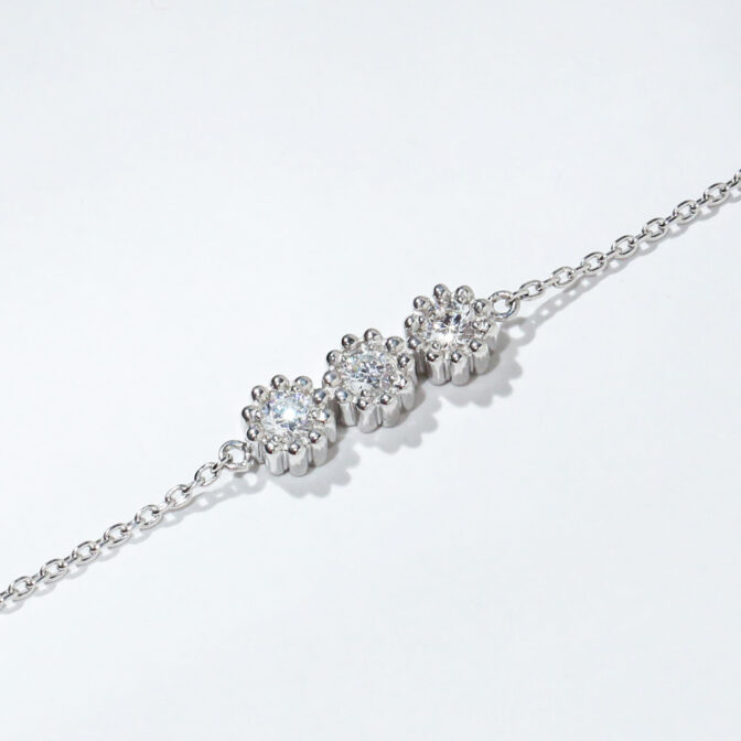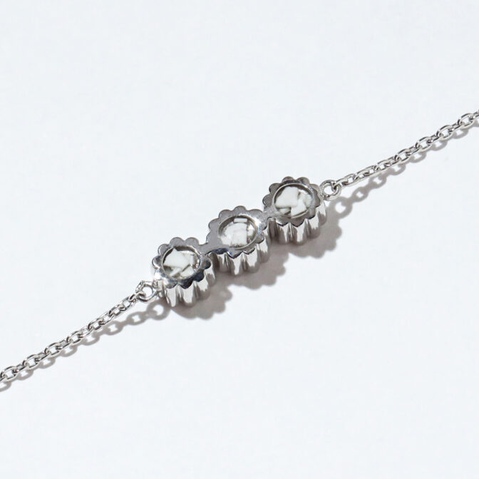 【MB03/K10WG】メモリアルブレスレット 完全防水樹脂埋封ジュエリー 10金ホワイトゴールド×誕生石3mm×3石