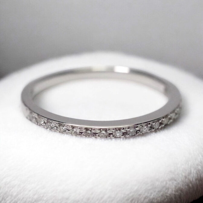 | デザイン | 15個のメレダイヤモンド(合計0.008ct)を埋め込んだデザイン。精密に埋め込まれたダイヤモンドが静かな輝きを放っています。 |