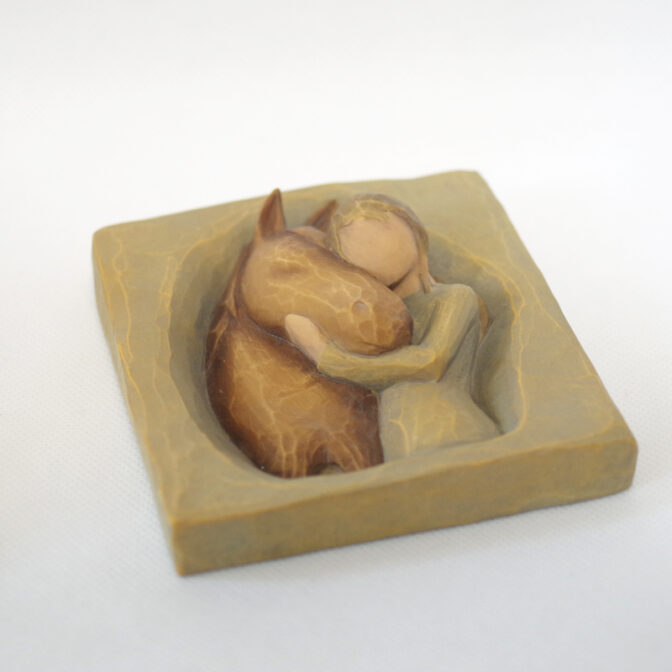 WillowTreeシリーズは、アメリカ人アーティストスーザンローディ(米国ミズーリ州在住)の手によってデザインされた彫刻作品です。大きな特徴として、人形でありながら顔を持たず、体のひねりやしぐさによって人生のシーンや感情を表現しているところです。アメリカやヨーロッパではギフトコレクションアイテムとして大変人気があり幅広く認知されています。 多くの方に手元に置いて頂くため、 |