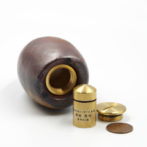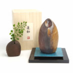 漆塗りの敷板 銅製の敷板 備前焼の一輪挿し 桐箱