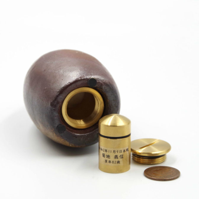 手元供養用ミニ骨壷 備前焼オブジェタイプの分骨壷 「蓮如」敷板・一輪挿し付