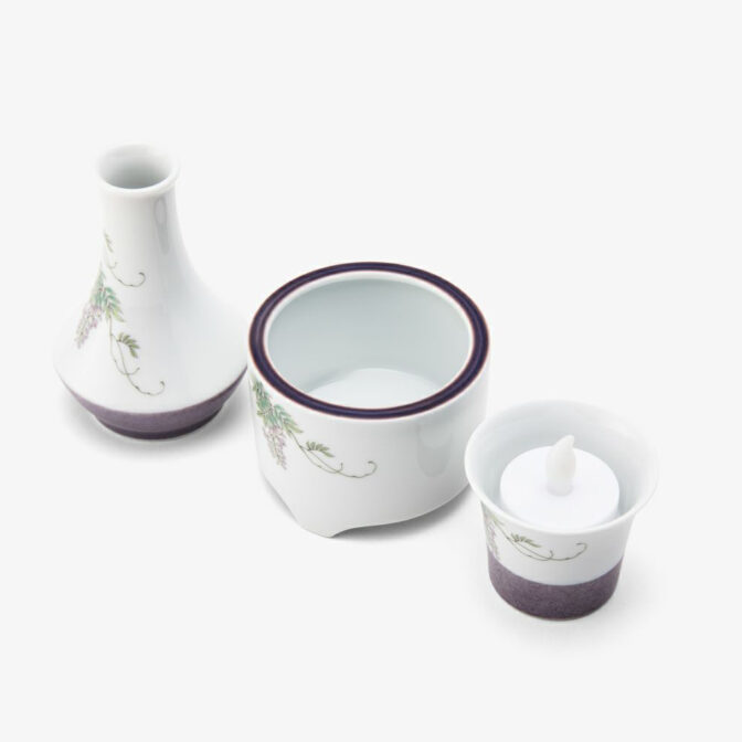 宮内庁御用達の老舗として有名な深川製磁ブランドの三具足。