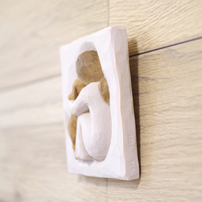 WillowTreeシリーズは、アメリカ人アーティストスーザンローディ(米国ミズーリ州在住)の手によってデザインされた彫刻作品です。大きな特徴として、人形でありながら顔を持たず、体のひねりやしぐさによって人生のシーンや感情を表現しているところです。アメリカやヨーロッパではギフトコレクションアイテムとして大変人気があり幅広く認知されています。 多くの方に手元に置いて頂くため、 |