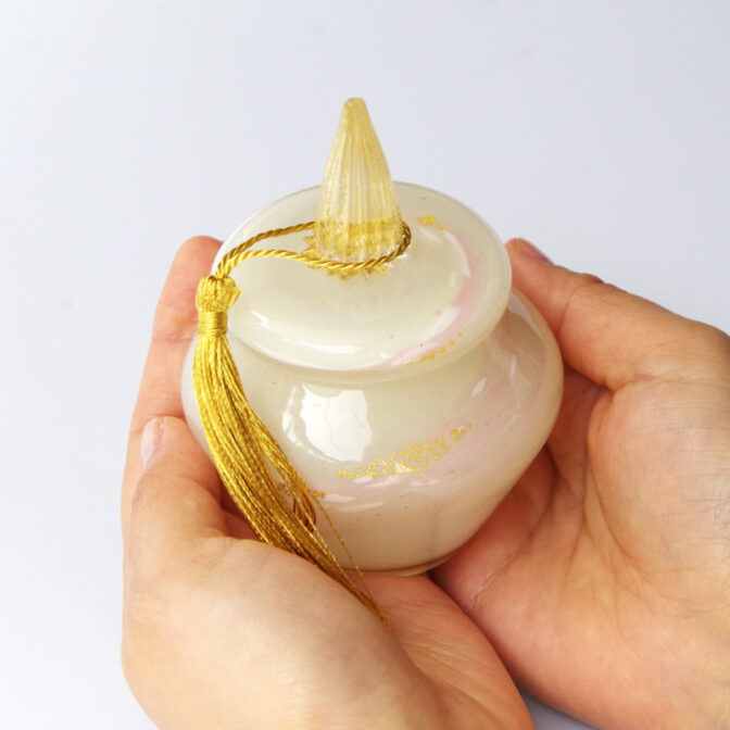 工芸品とは違い温かみ、高級感のあるミニ骨壷です。ひとつひとつ手作りのため柄やサイズに若干の個性差がございます。 |