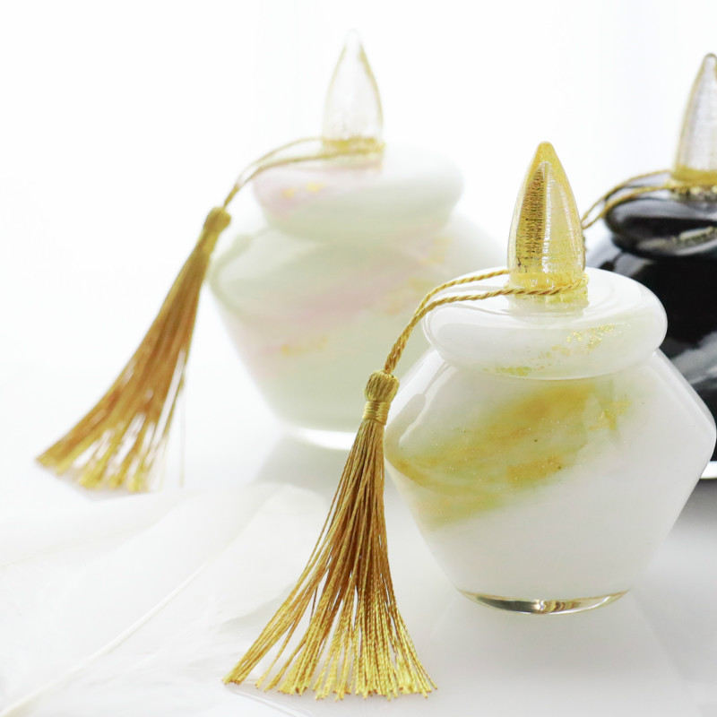 手元供養 分骨ミニ骨壺 デザイン硝子骨壷 [追憶 ~TUIOKU~ ] アイボリー
